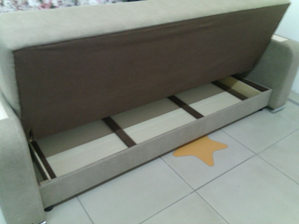 Компактный, устойчивый диван, имеется короб под белье.