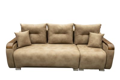 Взаимозаменяемое кресло-трансформер. Большое спальное место, ламинированный короб под белье. Механизм трансформации позволяет раскладывать диван, не повреждая поверхности пола. Наполнение: пружинные блоки "Боннель", пенополиуретан. Длину можно изменить по желанию клиента (каждые 10 см + 1500 руб.) Различная комбинация тканей, количество подушек по желанию заказчика.