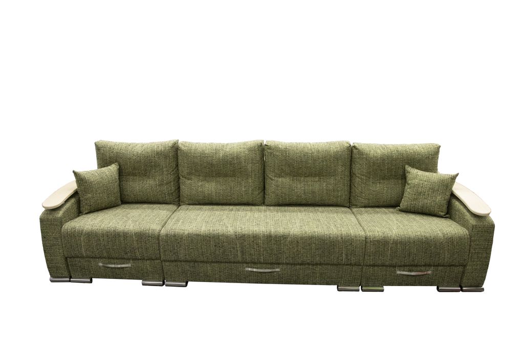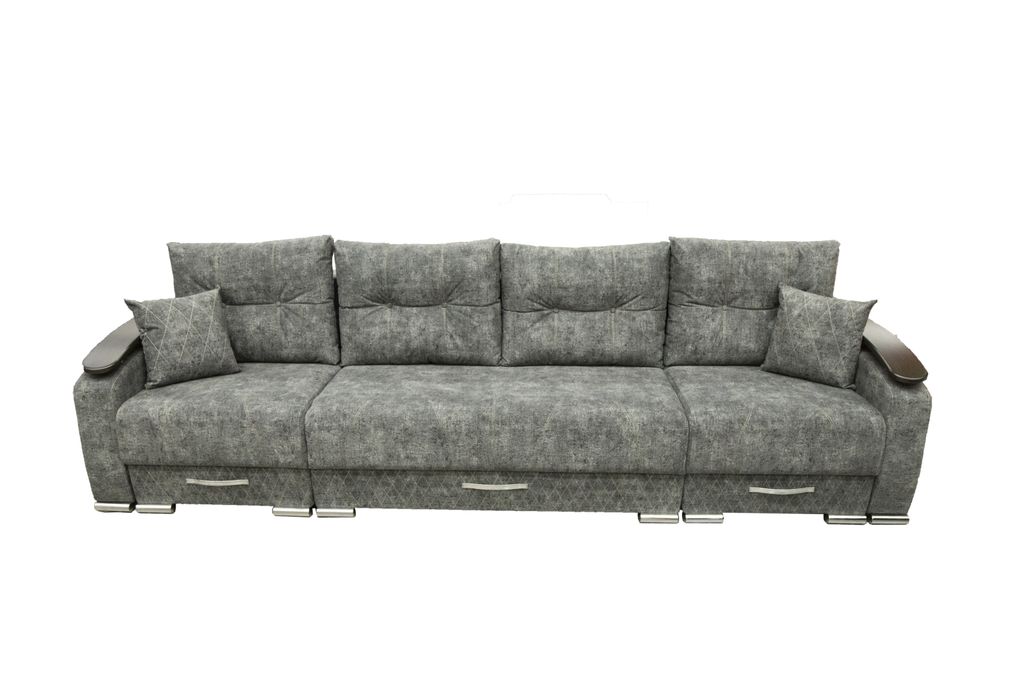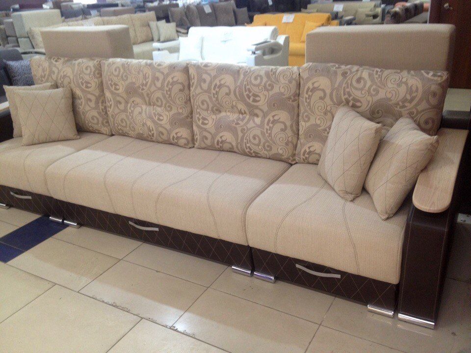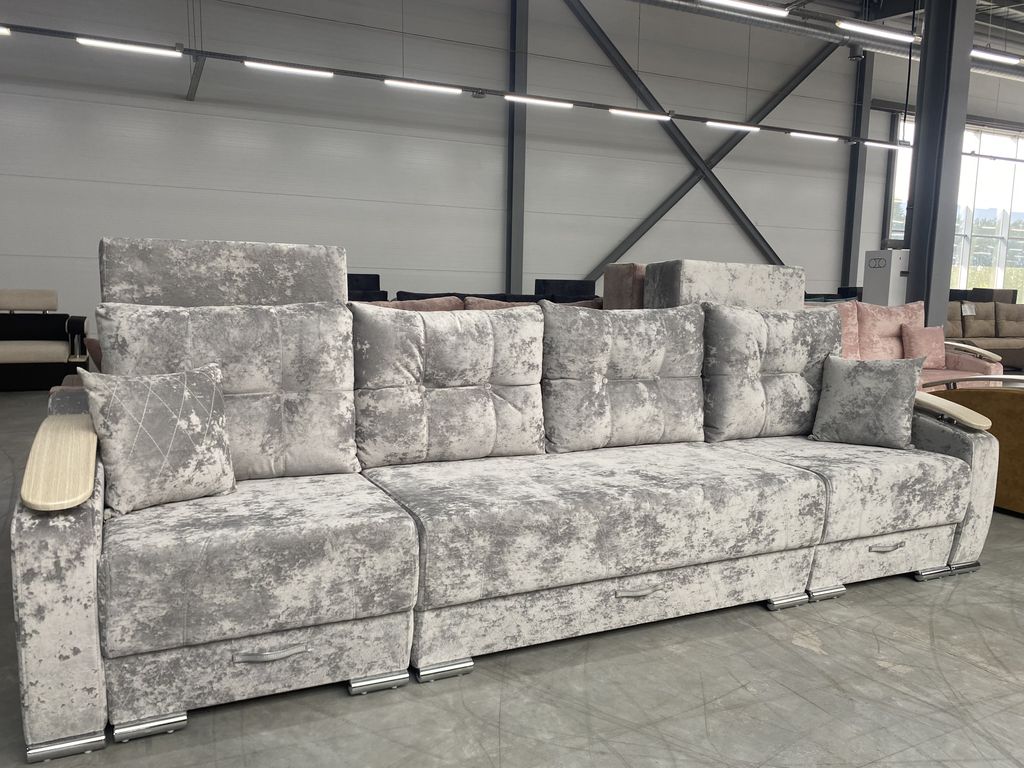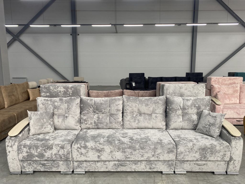Два угла - трансформеры. Большое спальное место, ламинированный короб под белье. Механизм трансформации позволяет раскладывать диван, не повреждая поверхности пола. Различная комбинация тканей, количество подушек, изменение длины дивана по желанию клиента.