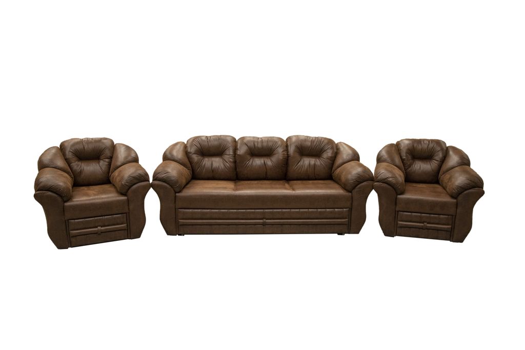 Оптимальная высота подлокотников, мягкие и пышные подушки создают комфортное место для отдыха. У кресел съемные подлокотники, имеются ламинированные короба под ними.
