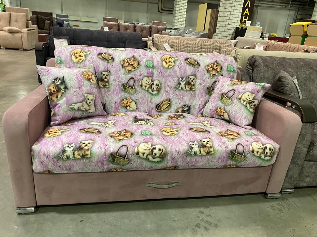 Диван легкий в трансформации. Цельный металлокаркас, березовые латы с ортопедическим эффектом. Ламинированный короб под белье.