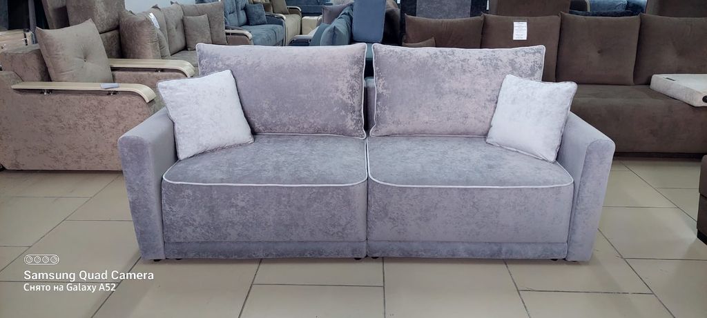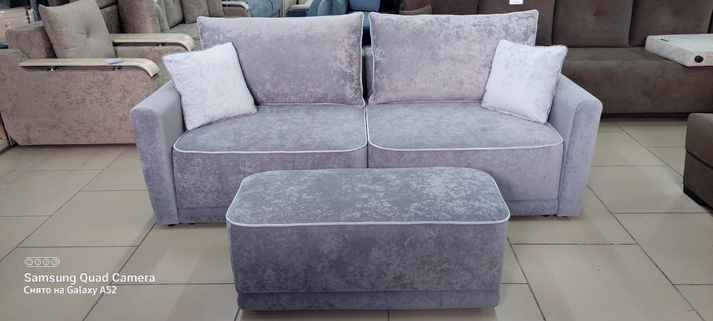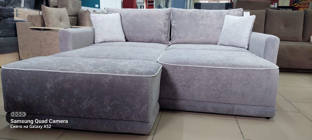 Каждая часть трансформера 1 м. Пуф 0,45 м отдельно, что позволяет варьировать габариты дивана. Большое спальное место, ламинированные короба для хранения постельного белья. Механизм трансформации позволяет раскладывать диван, не повреждая поверхности пола.